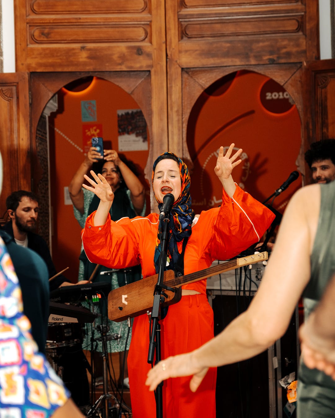 I stood on the rooftop, scarf in hand, hesitating. Until that night, I had never worn a scarf in a traditional way on stage. Looking at a room where roughly 80% of the audience wore hijab, I wondered if I should. It felt like a rare moment of potential safety, in a space where vulnerability might be held rather than exposed.